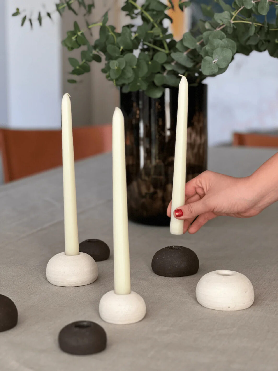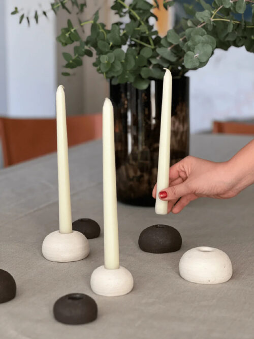 Chub midi mumluğumuz tamamen el yapımı minimal ve modern bir yapıya sahiptir. Sadeliğin ön planda olduğu bu seramik ürünümüz evinizin bir köşesinde ya da sofralarınızda yer alabilir. Bu model şamdan mumuna uygundur.